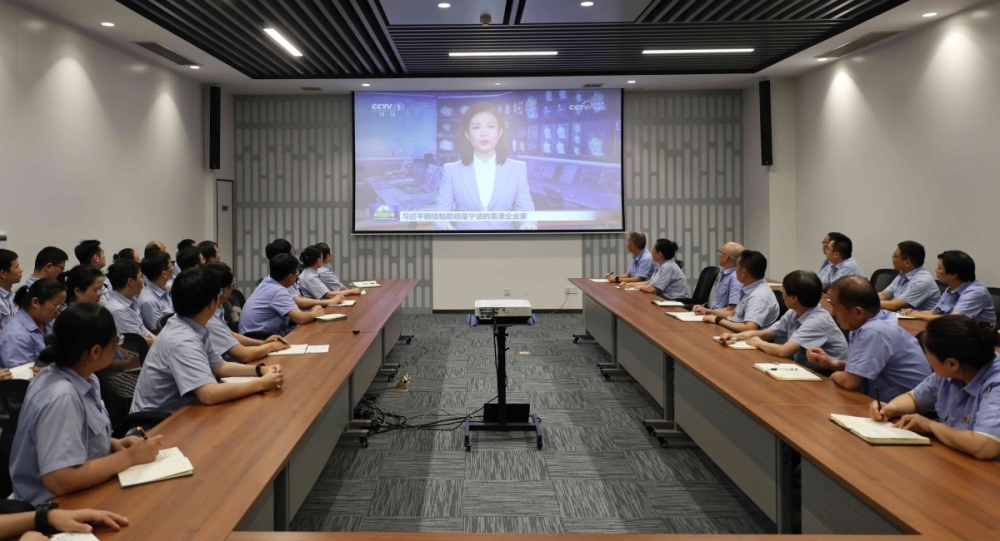 •   8月1日晚上7時(shí),在位于寧波高新區(qū)的寧波永新光學(xué)股份有限公司,數(shù)十名科技工作者坐在會(huì)議室內(nèi),共同收看《新聞聯(lián)播》。當(dāng)“習(xí)近平回信勉勵(lì)祖籍寧波的香港企業(yè)家”新聞播出時(shí),守在屏幕前的科技工作者臉上露出了自豪的笑容。